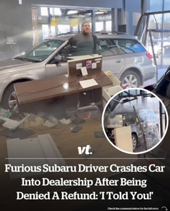 Furious Subaru driver crashes car into dealership after being denied a refund: ‘I told you!’ Furious Subaru driver crashes car into dealership after being denied a refund: ‘I told you!’ Read More »